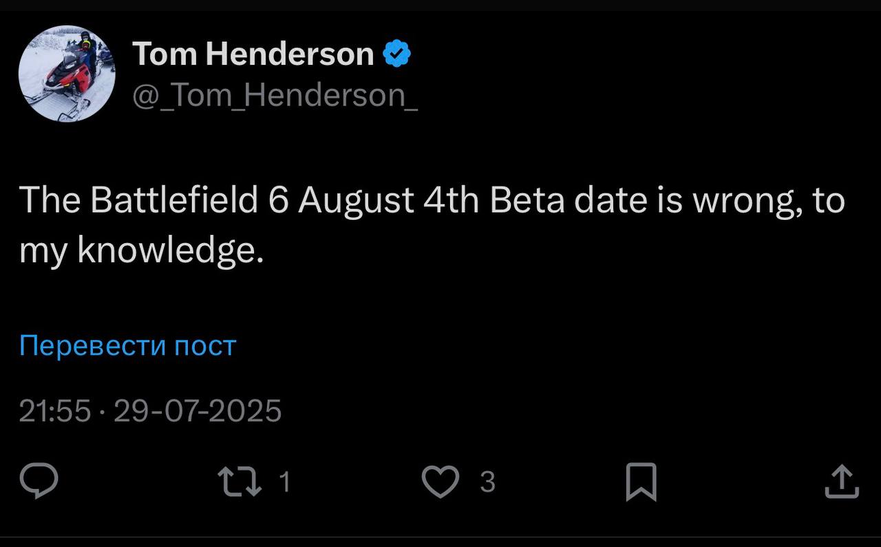 Когда бета будет — неизвестно, но "определенно не 4 августа". Примечательно, что это дата публикации "Battlefield 6 Open Beta" в EA App, а значит что-то, но на 4 августа все-таки запланировано