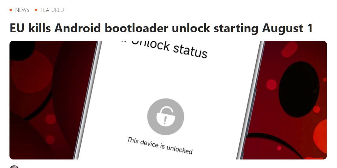 — 1 августа в ЕС заставляют производителей закрывать доступ к одной из главных особенностей Android — возможности разблокировки загрузчика;