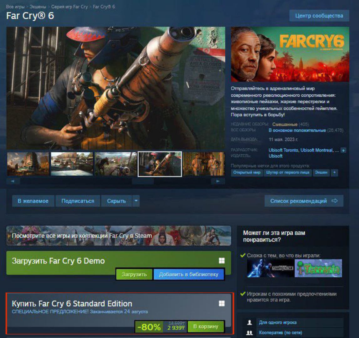 На Far Cry 6 стартовала рекордная скидка в 80% — игру можно забрать всего за 432 рубля 17 августа 2025 22:50 Забираем до 24 августа. Если в вашем регионе игра недоступна, то нужно создать новый аккаунт с другим регионом.
