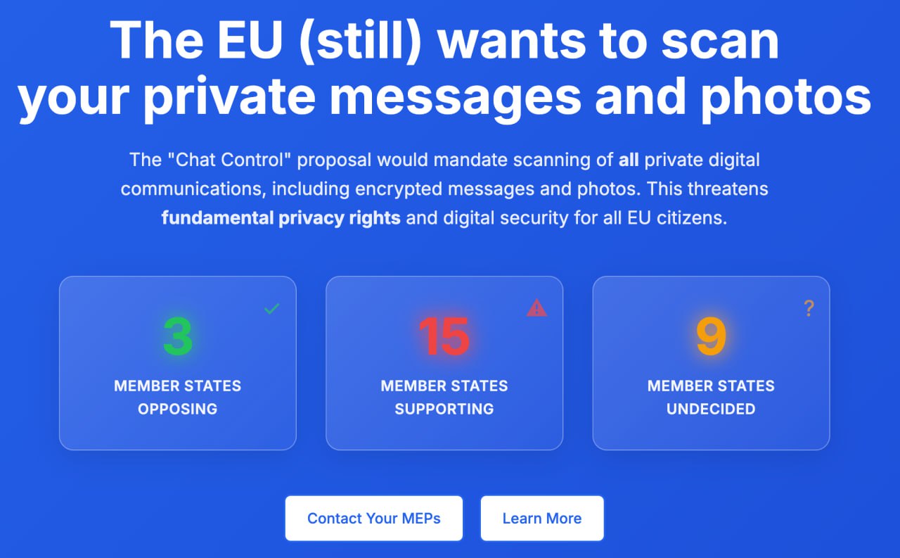 Дания, возглавив Совет ЕС, вынесла на обсуждение спорный законопроект: принудить все мессенджеры проверять чаты пользователей, включая защищённые шифрованием; — Делается это под предлогом борьбы с материалами сексуального насилия над детьми, но по факту это прямой удар по приватности; — Эксперты уже предупреждают, что закон уничтожит право на приватность переписок и откроет возможности для слежки, злоупотреблений и массовой цензуры; — Этот радикальный закон вполне может быть принят. Страны ЕС, ранее противившиеся Chat Control, начали менять позицию; — Детали компромиссов пока держат в секрете. Решение по законопроекту вынесут уже 14 октября.