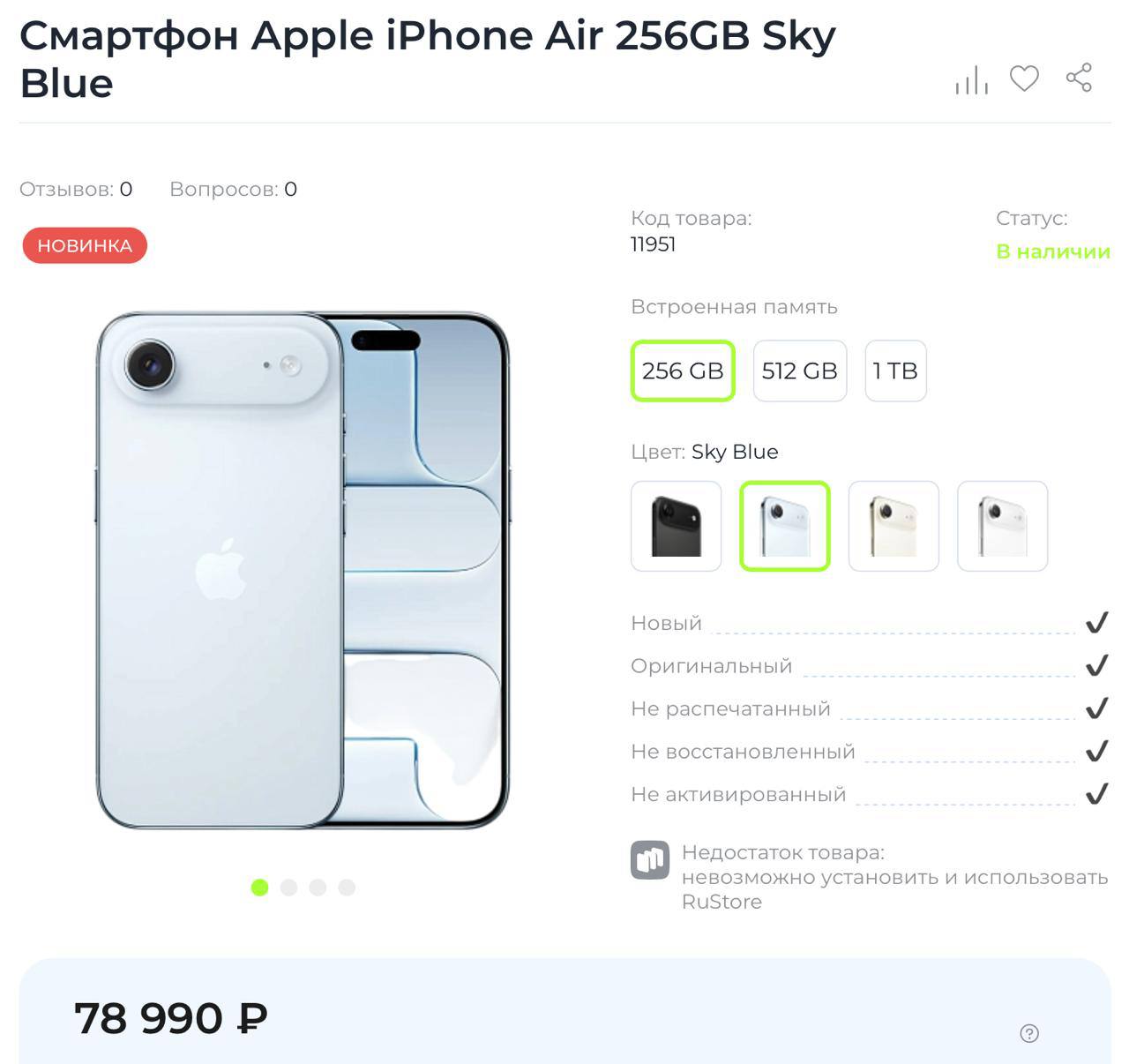 Стоимость iPhone 17 Air рухнула до 78 тысяч рублей — на старте продаж ультратонкий смартфон стоил от 120 тысяч 09 октября 2025 17:48