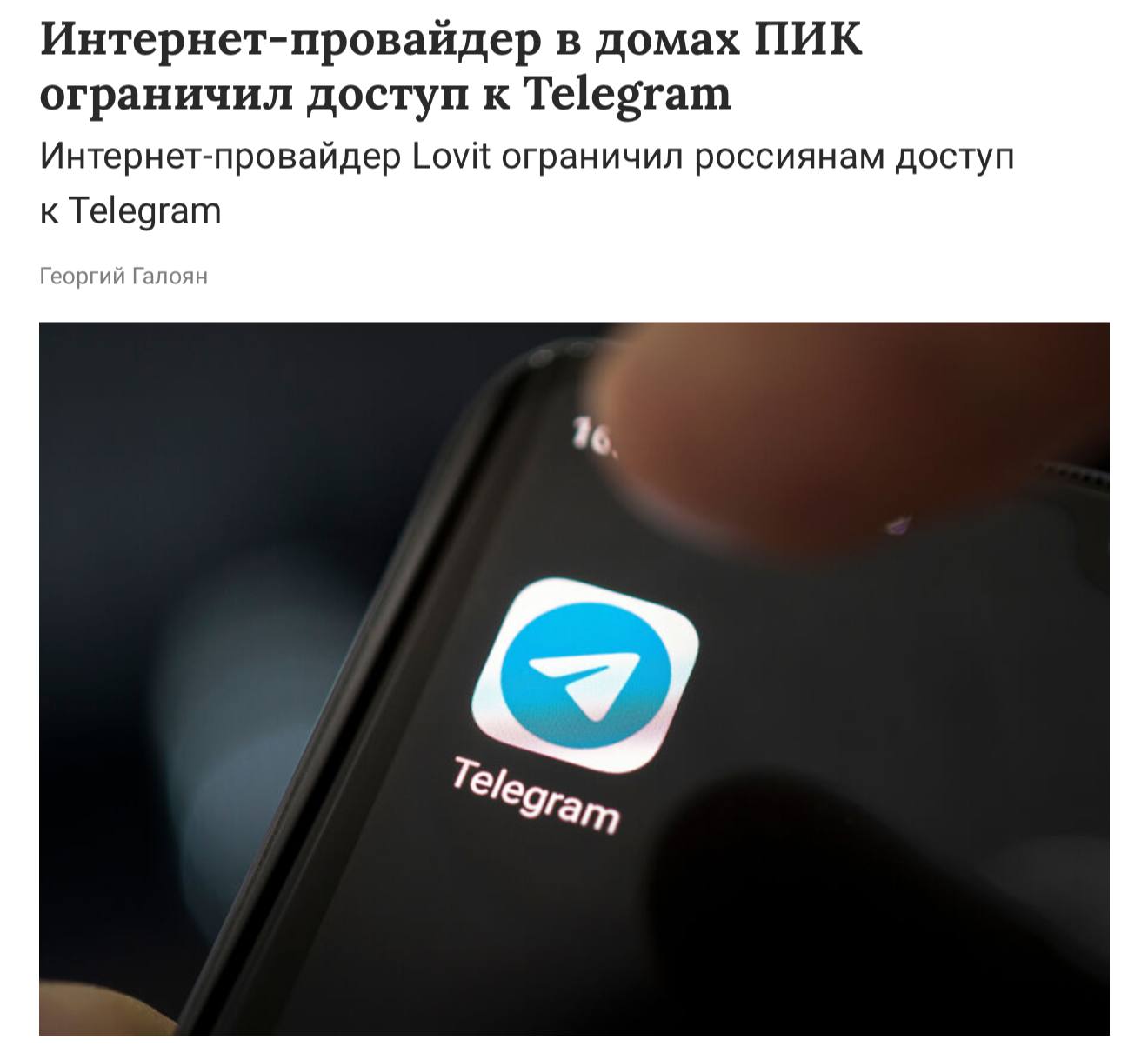 В новых домах Telegram не работает при подключении к Wi-Fi, причины ограничений не называются. Единственный доступный интернет-провайдер — Lovit. Войти в Telegram удаётся только через мобильный интернет.
