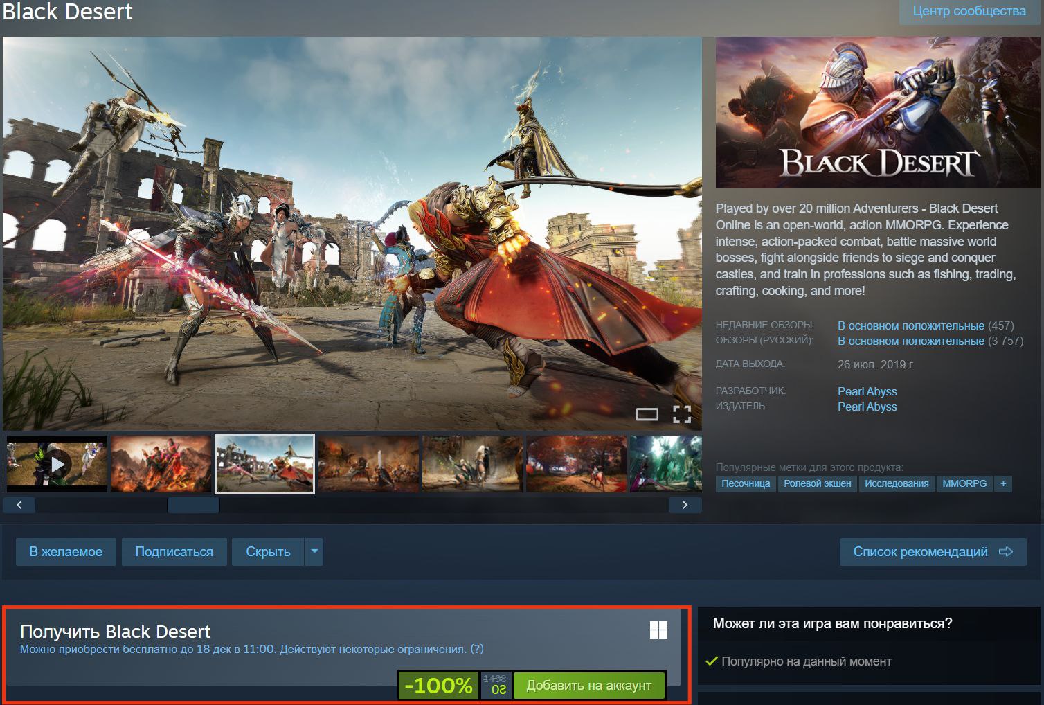 В Steam раздают Black Desert — это годная MMORPG с открытым миром, крутой кастомизацией и полной русской озвучкой