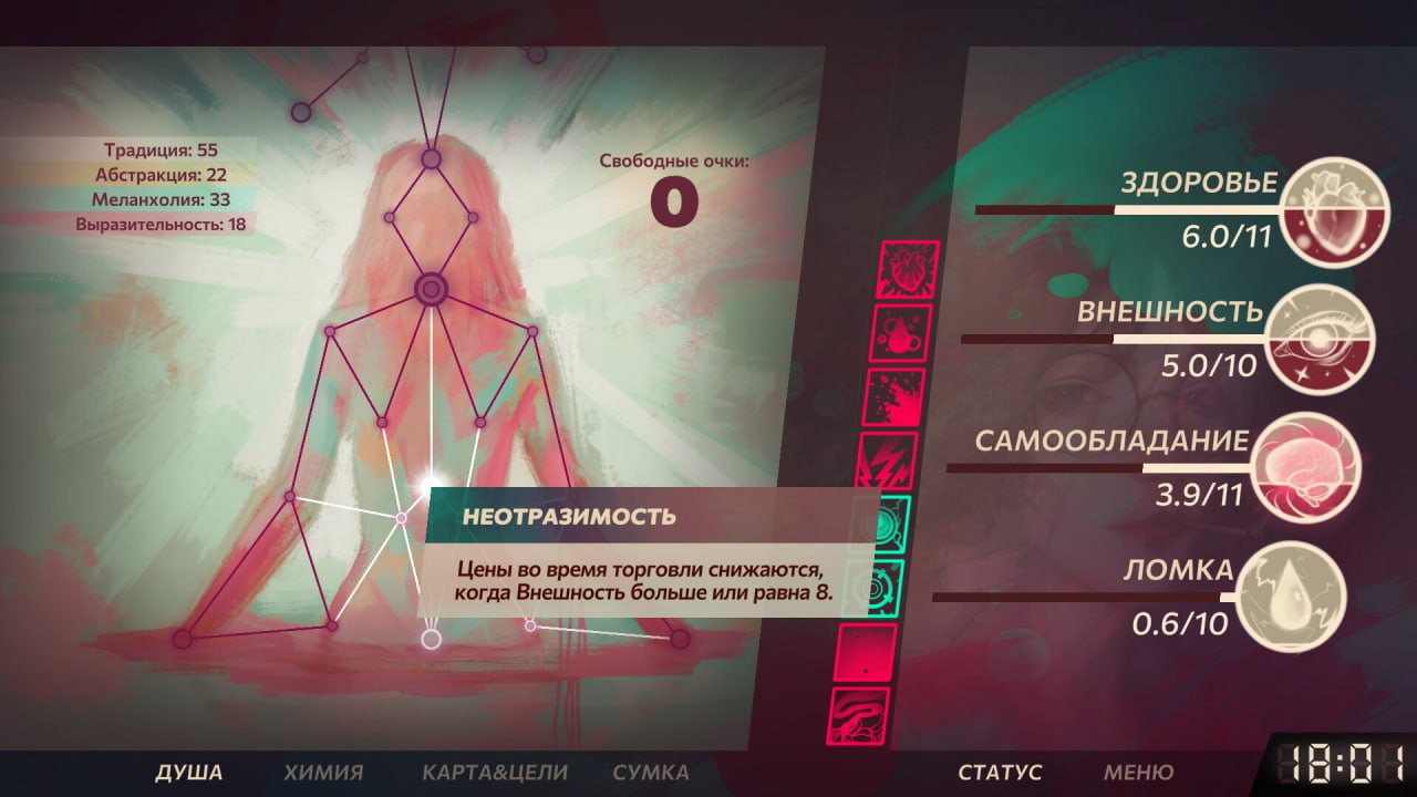 Игрокам предстоит выживать, буквально балансируя на грани срыва: планировать каждый день, следить за состоянием героини и не довести её до ломки. В игре заявлены ветка навыков и выборы, влияющие на развитие сюжета.